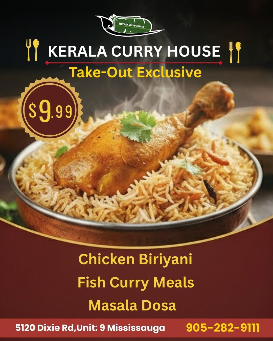 Located in the heart of Mississauga, Kerala Curry House brings the authentic flavors of Kerala straight to your table. From our famous weekend buffet featuring over 90+ vegetarian and non-vegetarian dishes, to Kerala classics like Kappa Biriyani, Ela Sadhya on banana leaves, seafood specialties, and sizzling dosas, every meal is prepared with homestyle care and authentic spices.
