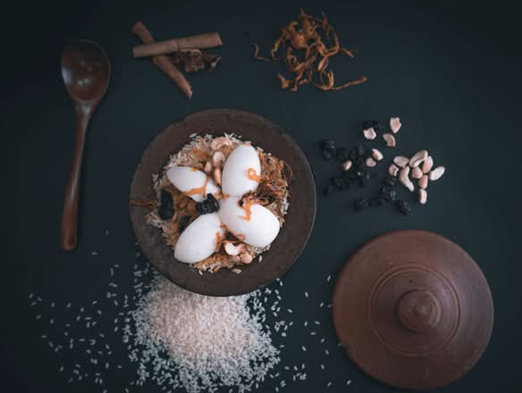 Kaima rice cooked with Malabar spices and masala coated beef pieces